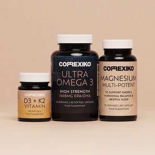 - Vitamin D3 + K2 work together to strengthen bones where it matters most — directing calcium into the bones, not the arteries — helping prevent the silent weakening that begins during perimenopause and accelerates after menopause.