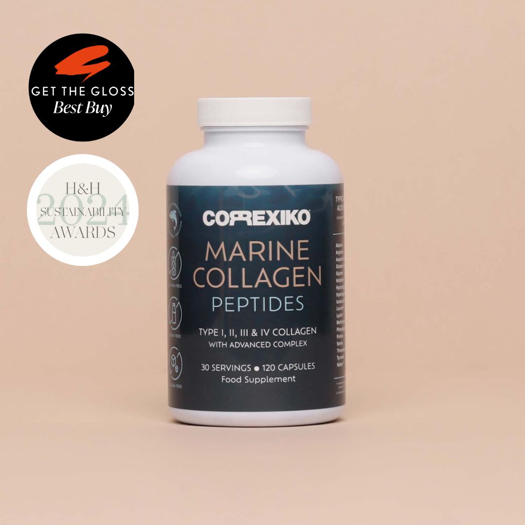Correxiko Marine Collagen Peptides Capsules contain 2200mg of double hydrolysed Marine Collagen per serving. Get enhanced results with our advanced marine collagen complex: